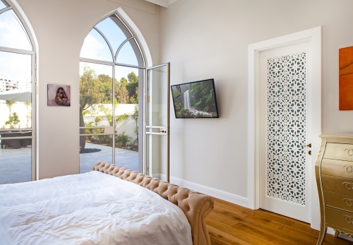 • דלת כניסה מעוצבת כנף וחצי